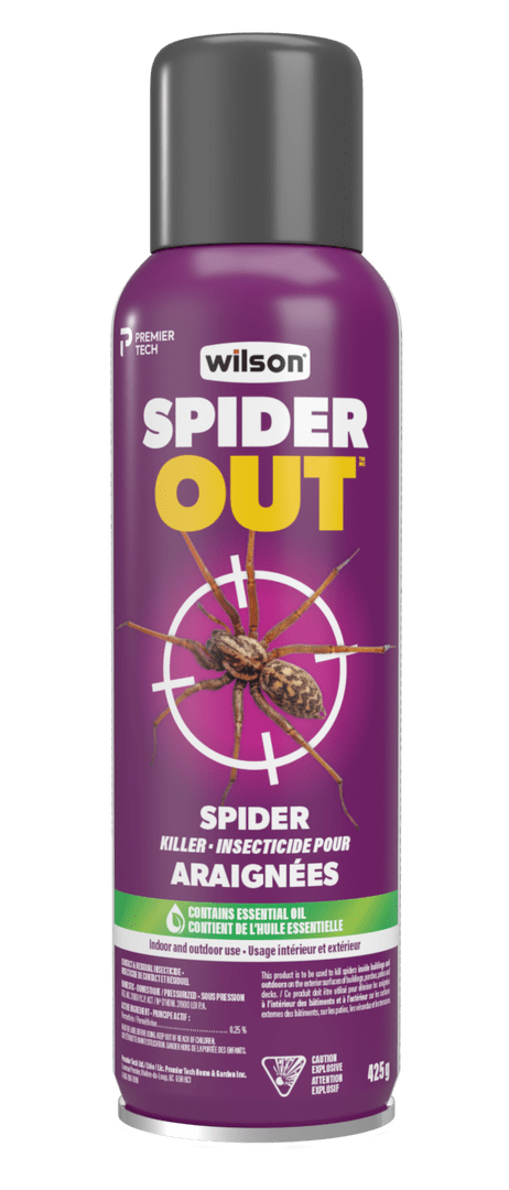 COMMENT UTILISER Tenir le contenant à environ 30 cm de la surface à traiter et vaporiser jusqu’à ce qu’elle soit mouillée. Des applications généreuses produiront une couche qui entrera dans les fentes et les fissures pour tuer les araignées. Si une réinfestation se produit, répéter l’application au besoin. Les surfaces de ciment non-peintes ou non-scellées pourraient nécessiter une autre application après deux semaines. Bien ventiler à la suite d’une application à l’intérieur. OÙ UTILISER À l'intérieur et à l'extérieur: dans les fentes, les fissures, le long et derrière les plinthes, sous les meubles et équipements, autour des poubelles, de façon localisée sur les planchers et couvre-planchers, surface extérieure des moustiquaires, portes, cadres de fenêtres, fondations, les terrasses, luminaires, gouttières, sous les avant-toits et aux endroits où les araignées peuvent entrer et se rassembler. EFFICACE CONTRE Araignées CONSEILS Avant d’appliquer le produit, le tester sur une zone peu visible de la surface à traiter afin de voir si le produit décolorera ou tachera. Ne pas appliquer sur des rideaux, de la tapisserie ou des matières similaires qui pourraient être tachés. MÉTHODE D'ÉLIMINATION Lorsque le contenant est vide, appuyer sur la gâchette afin de libérer la pression et jeter avec les ordures ménagères. Ne pas percer ni incinérer le contenant. ENTREPOSAGE Entre 5 ° C et 35° C PRÉCAUTIONS Garder hors de la portée des enfants. Ne pas utiliser sur les humains ou les animaux. Lire attentivement l'étiquette du produit avant son utilisation.