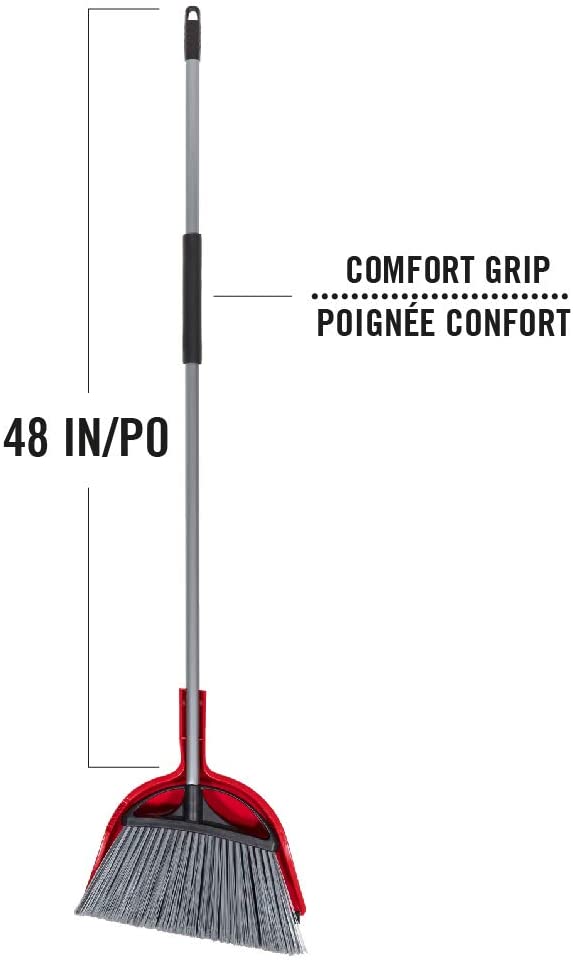 Balai grand angle tout usage 13po avec porte-poussière, porte-poussière clipsable avec dents intégrées pour nettoyer les poils, soies souples à pointes profilées; éliminent la poussière et déplacent la saleté la plus fine, manche en acier de 48? offrant une prise en main confortable et un trou pour faciliter le rangement. Utiliser à l’intérieur pour la poussière sèche, la saleté et les poils d’animaux.