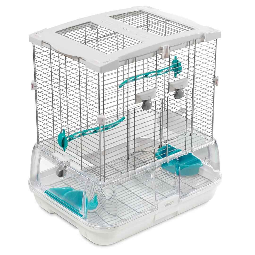 Les habitats Vision pour oiseaux comportent de nombreuses caractéristiques révolutionnaires les distinguant des cages habituelles qui, la plupart du temps, sont équipées d'un tiroir qui ne permet pas de recueillir les déchets proprement, et qui complique l'entretien. La conception de la cage Vision sans tiroir simplifie le nettoyage, car il suffit de détacher le haut de la cage, et de jeter les déchets contenus dans la base.