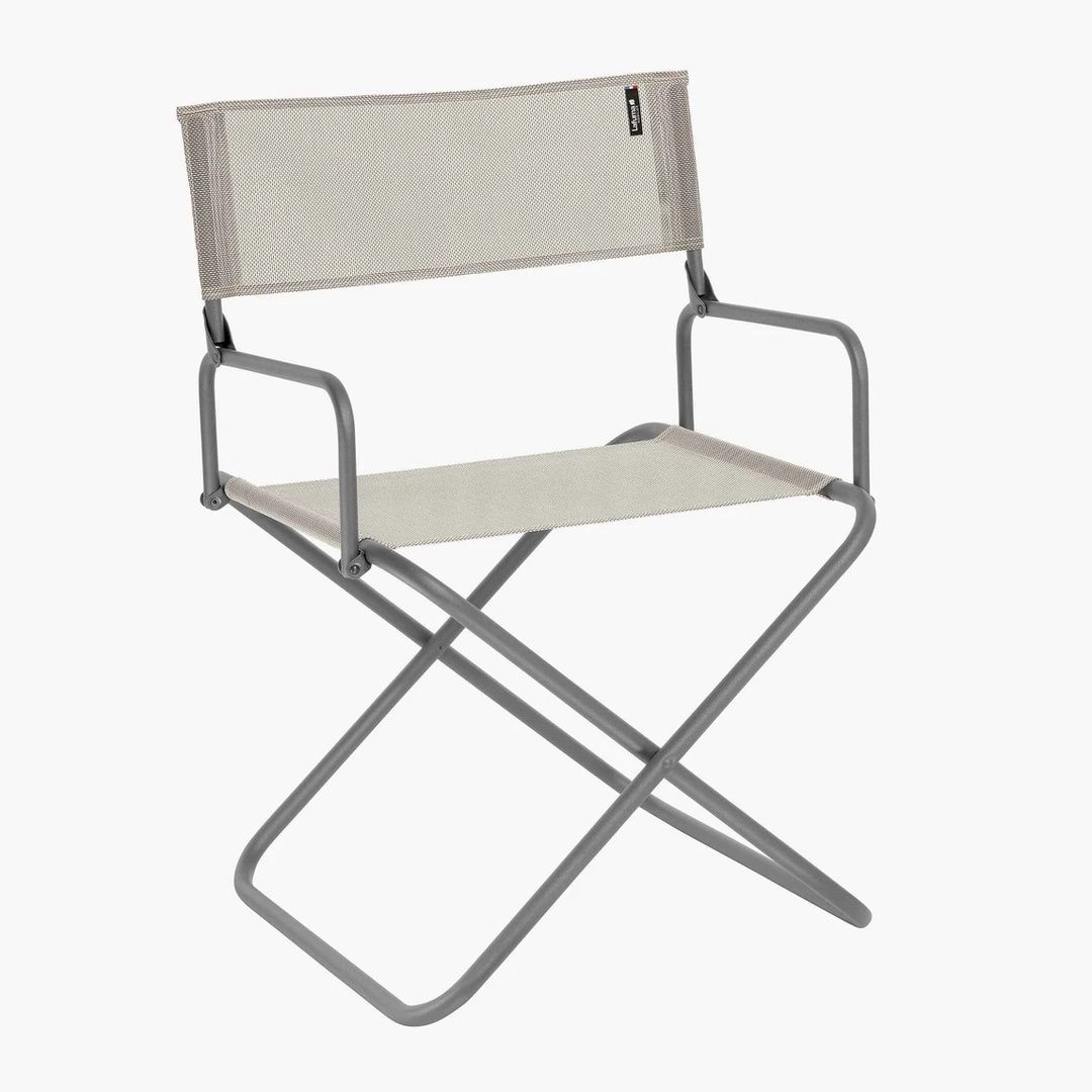 C’est le fauteuil des vacances par excellence… Pratique et confortable avec ses dimensions généreuses et ses accoudoirs, il est de tous les déplacements à la mer, à la campagne, au camping ou tout simplement au jardin. Directement inspiré du cinéma, ce siège régisseur pliant s’invite facilement dans tous vos scénarii ensoleillés ! Attention, on tourne ! Ses atouts : - Son armature en acier, solide avec ses tubes de diamètre 20 mm (piètement) et 16 mm (dossier et accoudoirs). - Son dossier et ses accoudoirs rabattables. - Sa toile Batyline®, conçue pour les ambiances extérieures, avec une excellente tenue aux UV, un traitement antifongique (contre les moisissures) et un tissage ajouré pour laisser passer l’eau. Facile d’entretien, elle oppose une vraie résistance aux déchirures, à l’abrasion et ne se déforme pas. Elle est enfin respectueuse du corps et de l'environnement avec son label Oeko-Tex® (garantie sans substance toxique). - Sa toile avec coutures renforcées. - Son système de pliage anti-pincements. 100KG MAX / ANTI-UV