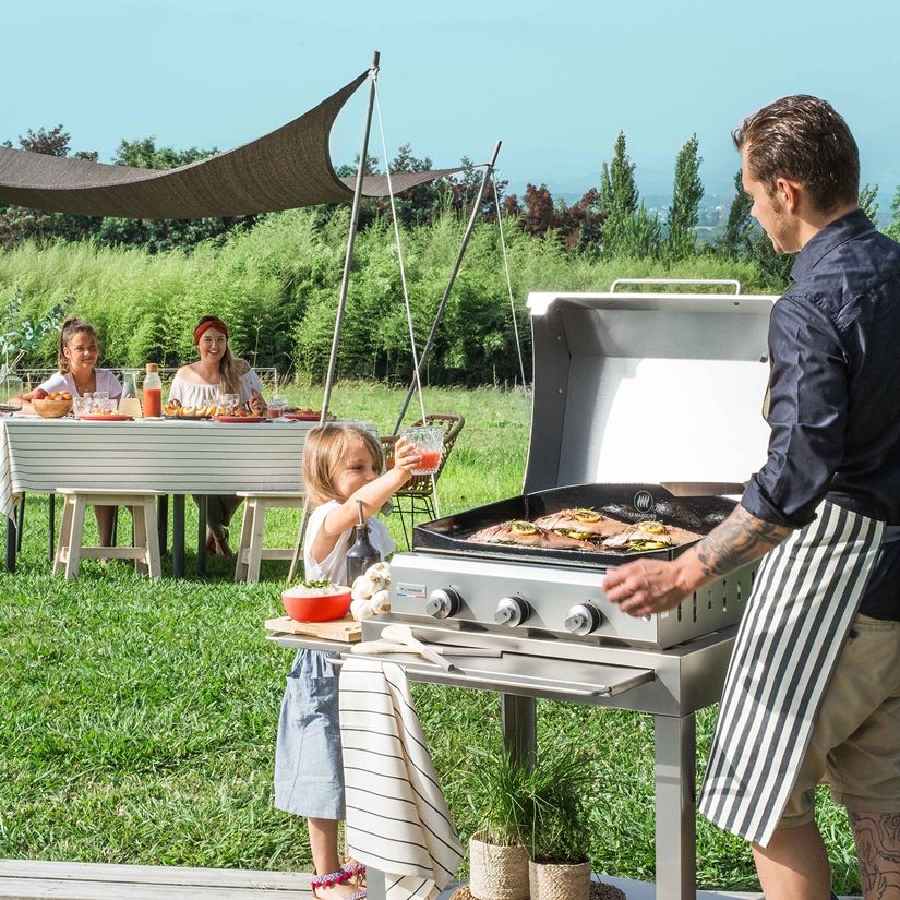 Ce couvercle s'adapte aux planchas gaz Pure 260 et Amalia 360. Il ne doit pas être utilisé comme couvercle de cuisson et avec des meubles équipés de crédence.