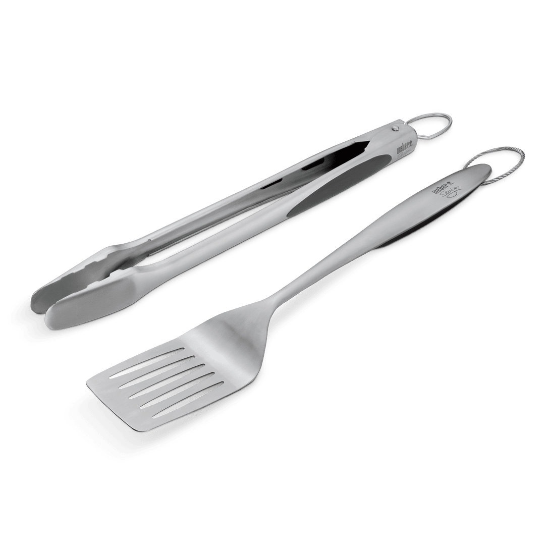 Spatule et pince vont de pair comme sel et poivre. Qu’il s’agisse de retourner des hamburgers et des hot-dogs ou de transférer un poulet à la bière du plateau à la grille de cuisson, la spatule et la pince à verrouillage du jeu d’accessoires Deluxe constituent deux indispensables du barbecue de tous les jours.