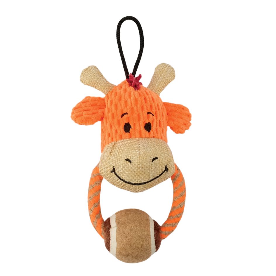 JOUET CHIEN HEURTOIRS MOJO NATURALS BALLE TENNIS RHINOCEROS ET GIRAFE 12CM