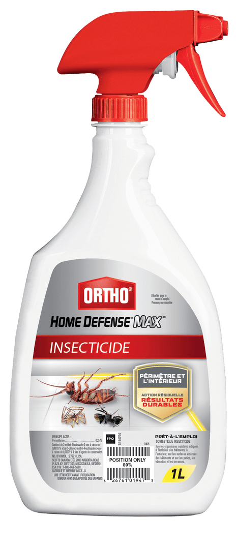 Tuez les insectes à l’intérieur et empêchez les autres d’entrer grâce à l'Insecticide pour le périmètre et l'intérieur Ortho® Home Defense® MAX??. Cette formule peut être utilisée à l’intérieur et à l’extérieur pour supprimer les fourmis, les blattes, les araignées et les autres insectes communs de la maison. Il est offert dans un format prêt à l’emploi pratique.