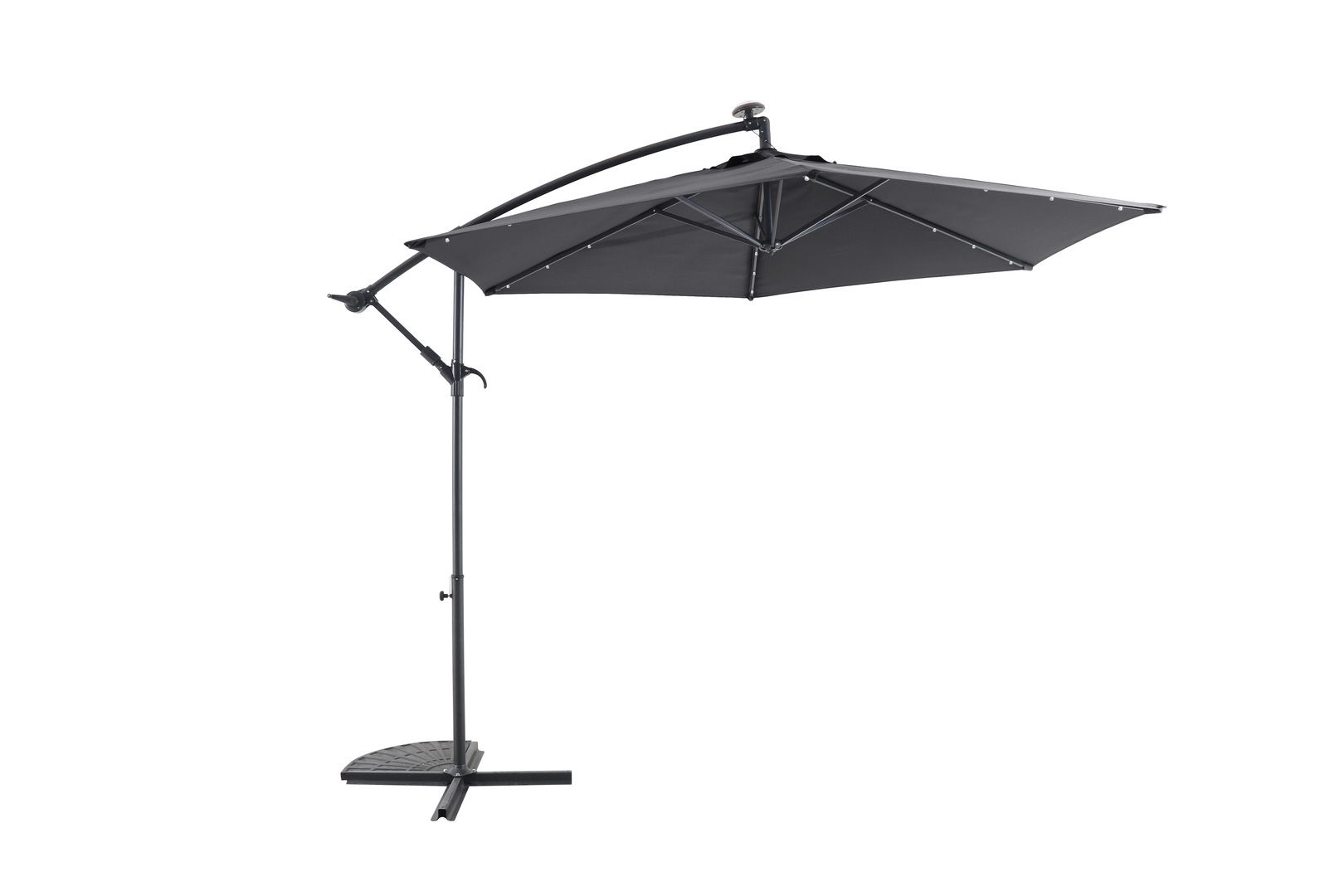 Vous n'aurez plus qu' à vous installer sous votre parasol pour vous prélasser à l'abri du soleil. Pourquoi ne pas prolonger vos soirées en plein air grâce à son système d'éclairage DEL ? Nous vous conseillons de lester le socle avec des dalles (non fournies) et de le fermer en cas de vent ou d'orage.