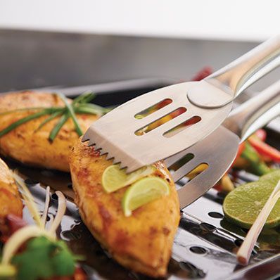 Plaque à griller de 11 po x 16 po à revêtement en porcelaine avec poignées en acier inoxydable et contours surélevés. La conception à motif unique améliore la fonctionnalité et la rigidité. Facile à nettoyer.