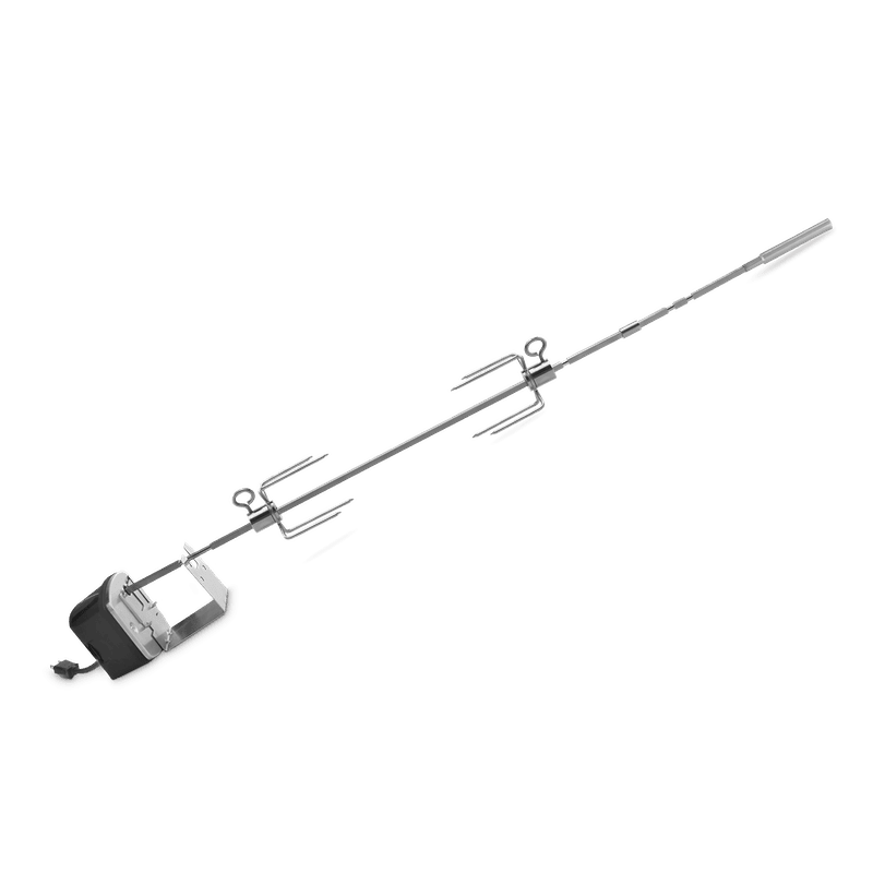 Transformez votre barbecue en rôtissoire extérieure. Faites rôtir lentement un poulet croustillant et juteux et des côtes levées tendres. La rôtissoire fait tourner doucement les aliments au-dessus de la grille de cuisson pour obtenir une viande succulente et juteuse, tout droit sortie de votre cuisine extérieure.