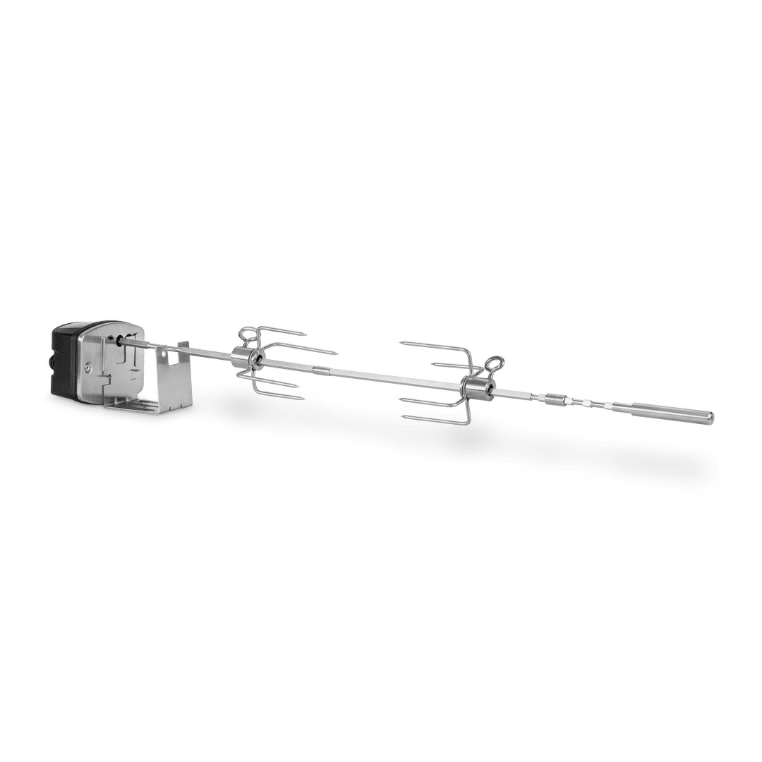 Transformez votre barbecue en rôtissoire extérieure. Faites rôtir lentement un poulet croustillant et juteux et des côtes levées tendres. La rôtissoire fait tourner doucement les aliments au-dessus de la grille de cuisson pour obtenir une viande succulente et juteuse, tout droit sortie de votre cuisine extérieure.