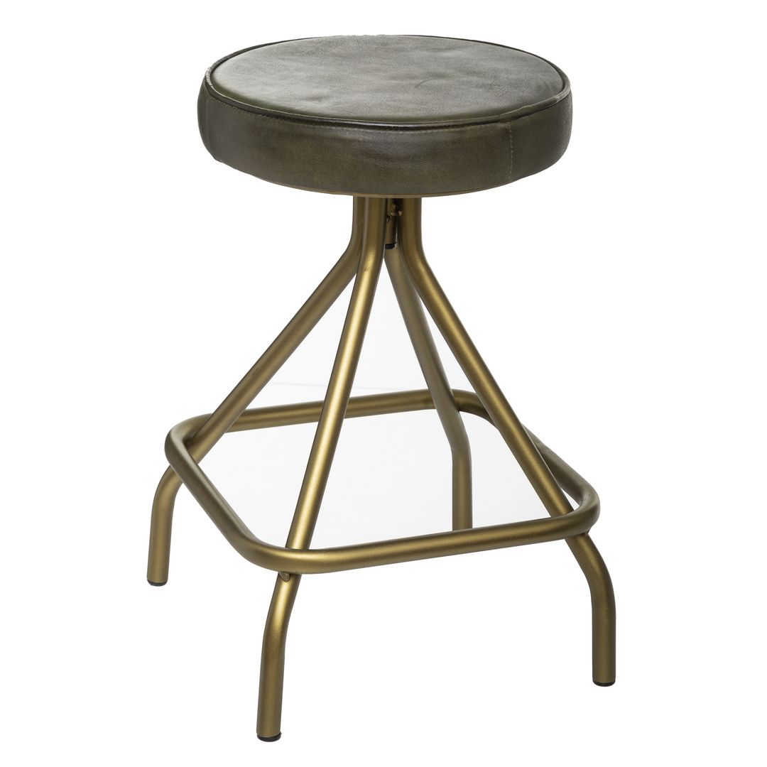 TABOURET ANJUN FER/MOUSSE/CUIR KAKI H49CM