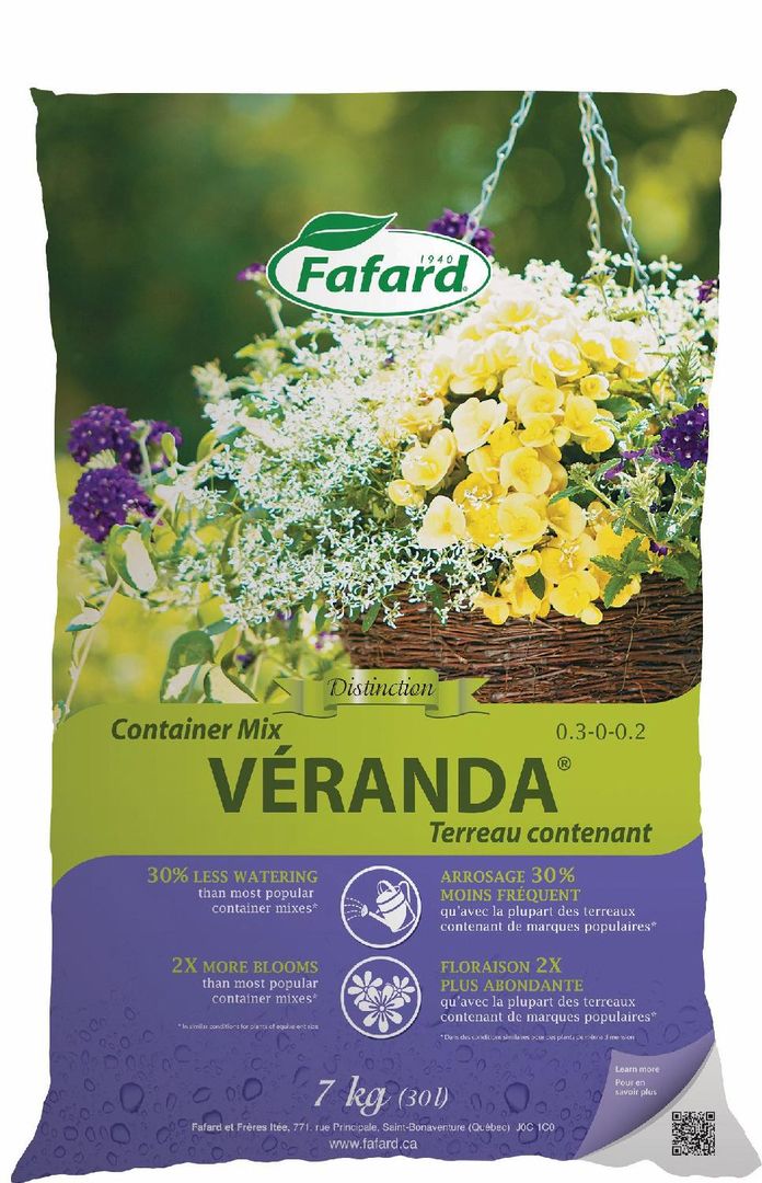 Le terreau contenant VERANDA® est spécialement conçu pour la plantation des annuelles et vivaces en contenants extérieurs. Ce terreau à base de tourbe de sphaigne est enrichi de fibre de noix de coco, de compost et d'engrais à libération contrôlée pour des résultats exceptionnels.