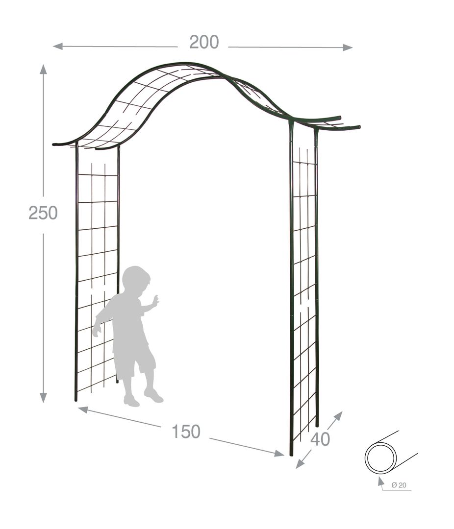 Ce tuteur arche Portique est idéal pour votre extérieur, il sert de tuteur à vos plantes grimpantes mais a aussi une fonction décorative, il pourra être ornée de supports de jardinières, de suspensions florales, de lanternes ou encore de guirlandes. Créez un endroit chaleureux pour votre extérieur. En tube rond de 20 mm, ce qui assure une très bonne robustesse du produit Cette arche mesure 250 cm de haut, 200 cm de long, et 40 cm de large. Elle est doté d’une longueur de passage de 150 cm. Fabrication française. Acier époxy résistant au gel et UV. Assemblage par emboîtage, pour un montage simple et rapide ! Notice de montage fournie.
