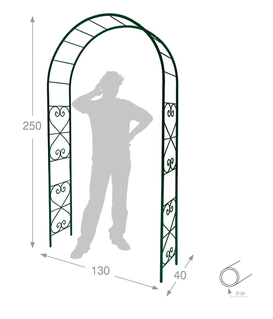 Ce tuteur arche Romantique est idéal pour votre extérieur, il sert de tuteur à vos plantes grimpantes mais a aussi une fonction décorative, il pourra être ornée de supports de jardinières, de suspensions florales, de lanternes ou encore de guirlandes. Créez un endroit chaleureux pour votre extérieur. En tube rond de 20 mm, ce qui assure une très bonne robustesse du produit, Cette arche mesure 250 cm de haut, 130 cm de long, et 40 cm de large. Fabrication française. Acier époxy résistant au gel et UV. Assemblage par emboîtage, pour un montage simple et rapide ! Notice de montage fournie.